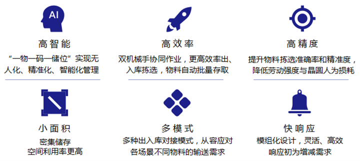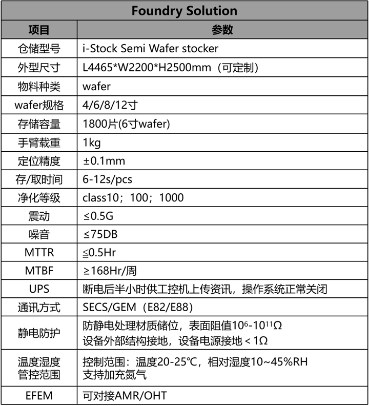 i-Stock Semi-wafer stocker半導體晶圓智能倉儲屬于國內先進的半導體晶圓智能倉儲應用中的一種新型、高效、安全、穩定的晶圓存儲設備,其設備對半導體晶圓片實行“一物一碼一儲位”的無人化、精準化、智能化管理,并通過與ERP\MES\WMS等系統的無縫集成,實現晶圓智能化存儲,達到提升效率、減少用工、降低錯料、人工誤作廢料的風險。目前該設備已在半導體智能倉儲應用場景中得到廣泛使用。